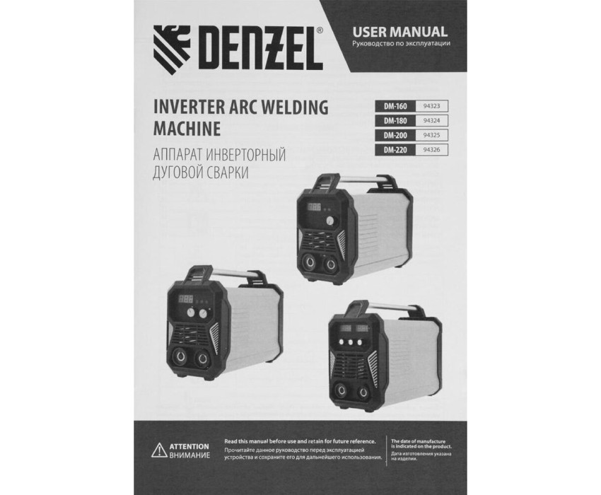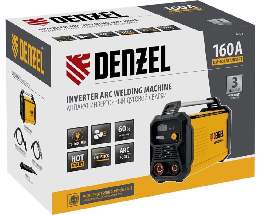 Сварочный аппарат DENZEL Аппарат инвертор. дуговой сварки DM-160 Standart, 160 А, ПВ 60% 94323