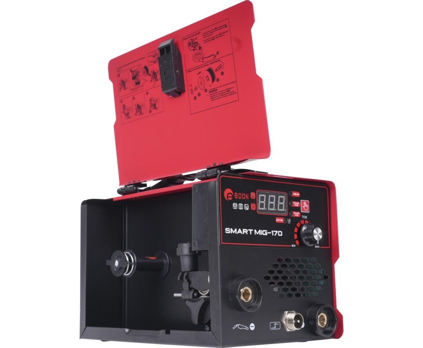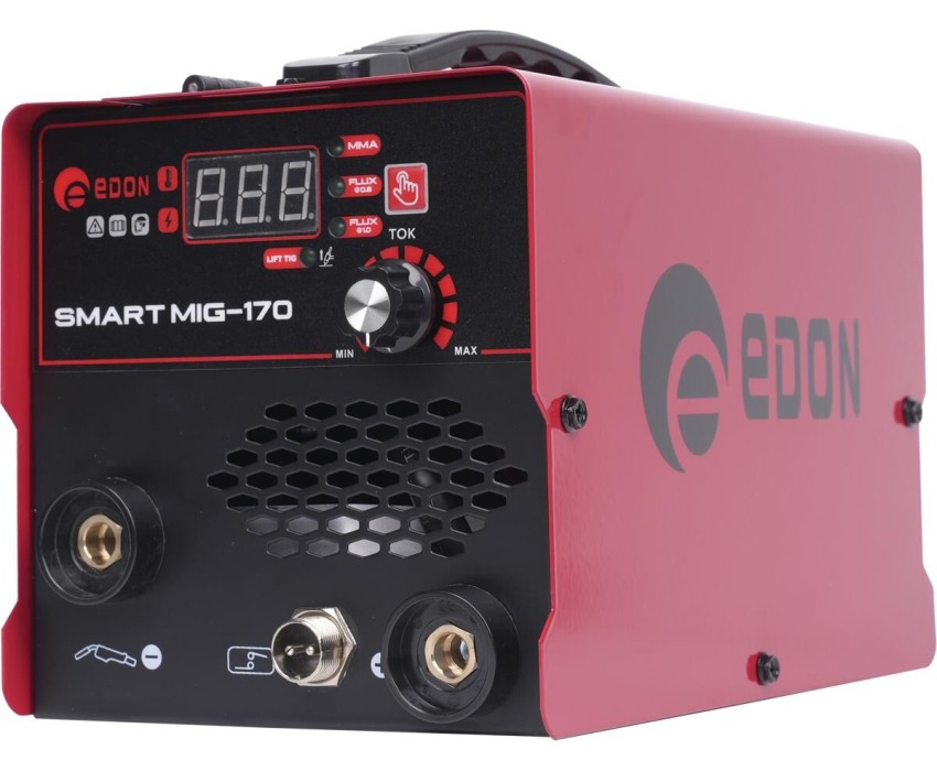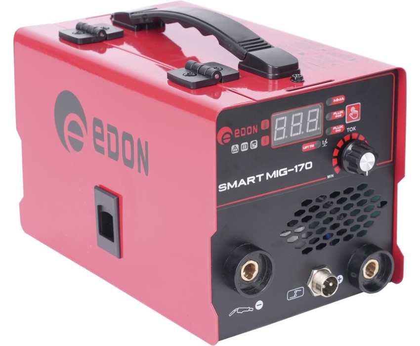 Сварочный аппарат Edon Smart MIG-170 без газа, MIG, MMA, FCAW. Сварочный инверторный полуавтомат с функцией ручной дуговой сварки) предназначен для ручной дуговой сварки ММА стальных металлоконструкций из низкоуглеродистых и низколегированных сталей штучными электродами с покрытием всех видов и размеров от 2,0 до 4,0мм, а также для сварки FCAW без газа порошковой (самозащитной) проволокой (с флюсом) диаметром 0,8-1,0мм. В данном сварочном полуавтомате предусмотрена функция LIFT TIG - это процесс дуговой сварки, при котором используется дуга, горящая между неплавящимся вольфрамовым электродом и изделием. Инверторные сварочные полуавтоматы используются для сварки изделий с повышенными требованиями к внешнему виду и форме шва. Инвертор предназначен для работы от однофазной сети 220В(± 10%).