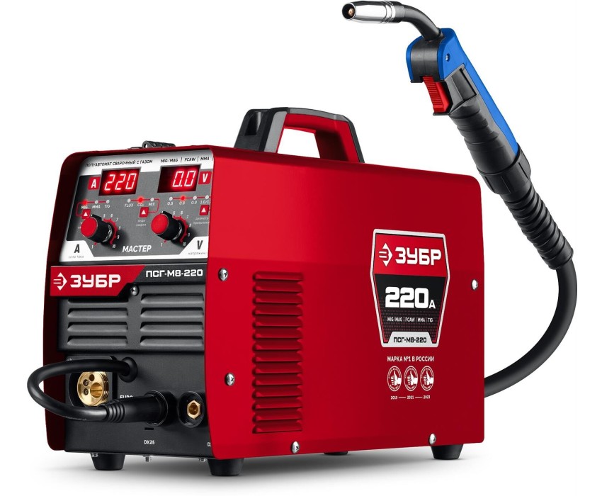 ЗУБР MASTER, MIG / MAG, FCAW, MMA, TIG, 220 А, полуавтомат сварочный, с газом / без газа, горелка ПСГ-220 (ПСГ-М8-220)