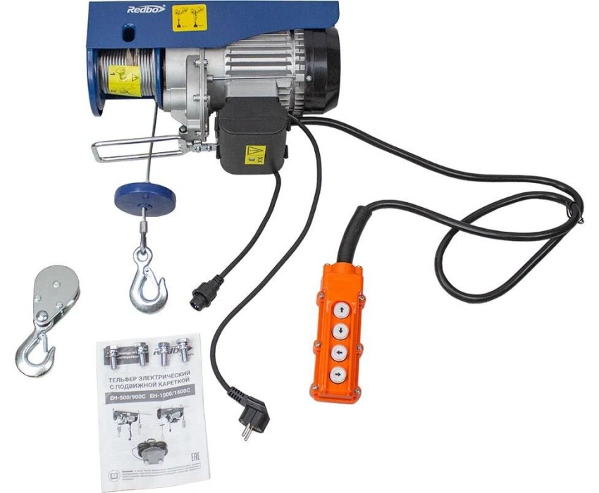 REDBO EH-500/900C Тельфер электрический с подвиж кареткой (900Вт, 250/500кг, трос 12м, ø4,2мм)
