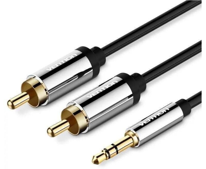 VENTION Кабель аудио 2хRCA (m) - Jack 3.5 (m), 3м, GOLD, черный [p550ac300-s]