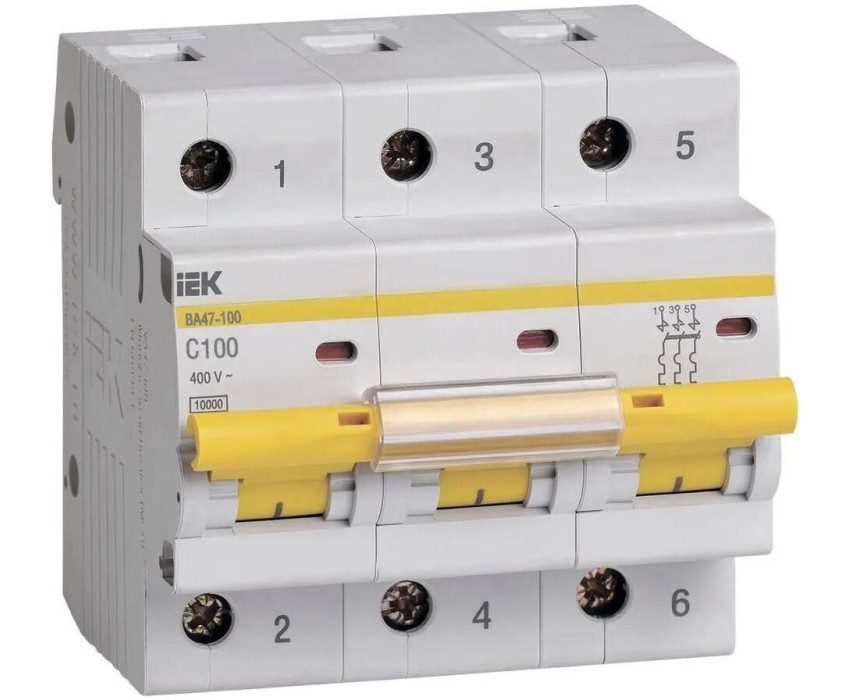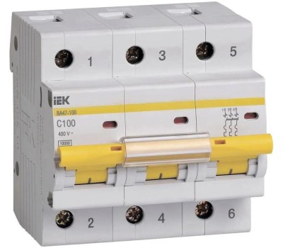 IEK Выключатель автоматический MVA40-3-100-C ВА47-100 100A тип C 10kA 3П 400В 4.5 мод белый (упак.:1шт)