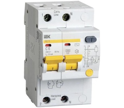 IEK Выключатель автом. дифф. тока MAD10-2-006-C-010 АД12 6A тип C 4.5kA 10мА AC 2П 230В 3мод белый (упак.:1шт)