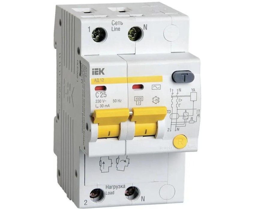 IEK Выключатель автом. дифф. тока MAD10-2-025-C-030 АД12 25A тип C 4.5kA 30мА AC 2П 230В 3мод белый (упак.:1шт)