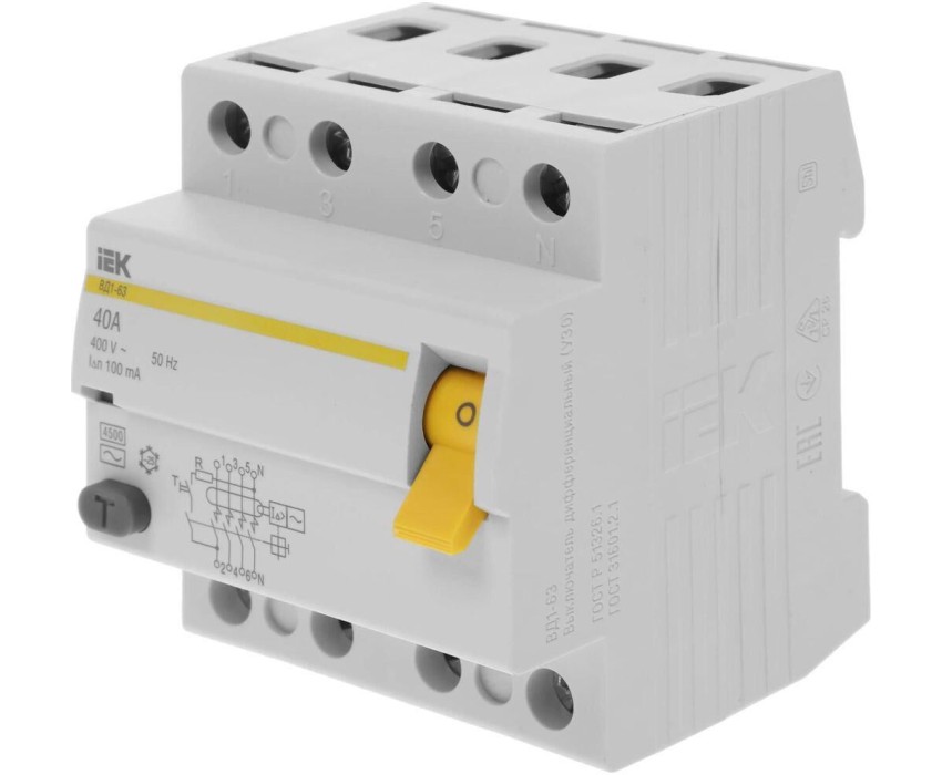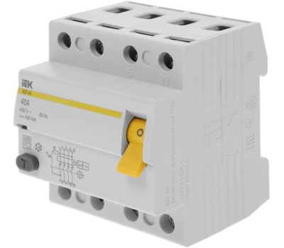 IEK Выключатель дифф.тока УЗО MDV10-4-040-100 ВД1-63 40A 100мА AC 4П 400В 4мод белый (упак.:1шт)