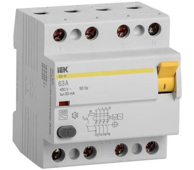 IEK Выключатель дифф.тока УЗО MDV10-4-063-030 ВД1-63 63A 30мА AC 4П 400В 4мод белый (упак.:1шт)