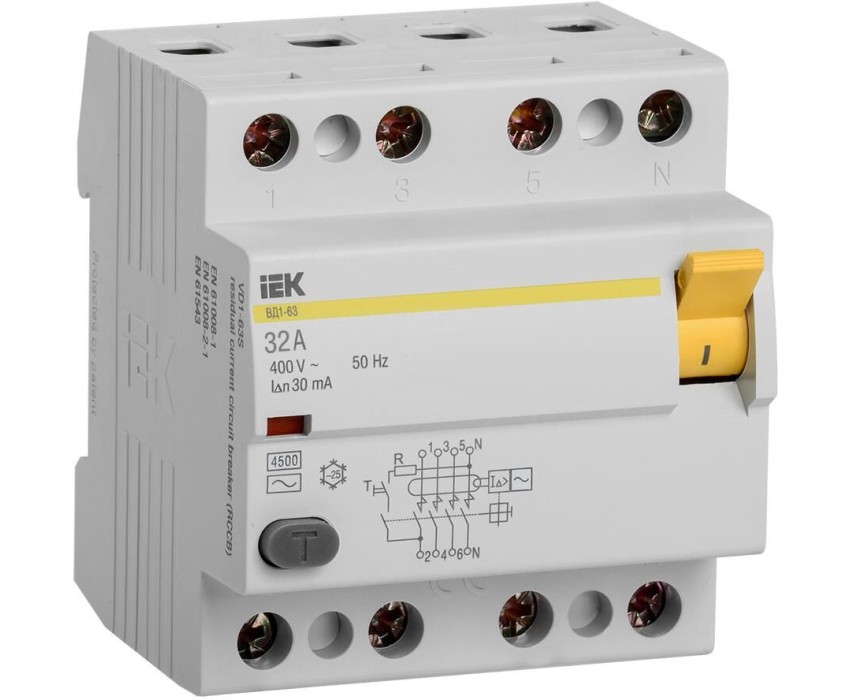 IEK Выключатель дифф.тока УЗО MDV10-4-032-030 ВД1-63 32A 30мА AC 4П 400В 4мод белый (упак.:1шт)