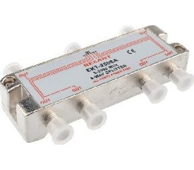 Телевизионный делитель это удобное средство для разделения сигнала на несколько равных частей. Антенные делители,также называемые телевизионные сплиттеры часто используются, когда требуется подключить один телевизионный кабель, идущий от антенны, сразу к нескольким телевизорам или ресиверам. Особенно это актуально в многокомнатных квартирах или многокомнатных загородных домах. Делитель имеет один вход под F разъем и шесть выходов, также под F разъемы. Сигнал, подающийся на вход делителя, делится на две равные части и передается на выходы. Для подкл кабелей используются стандартные F-разъемы. Полоса пропускания делителя от 5 до 2500МГц позволяет использовать его в системах спутникового телевидения. Качественно изготовленный ТВ сплиттер REXANT долго и надежно прослужит в составе телевизионной системы, делая удобной эксплуатацию нескольких тел-в.