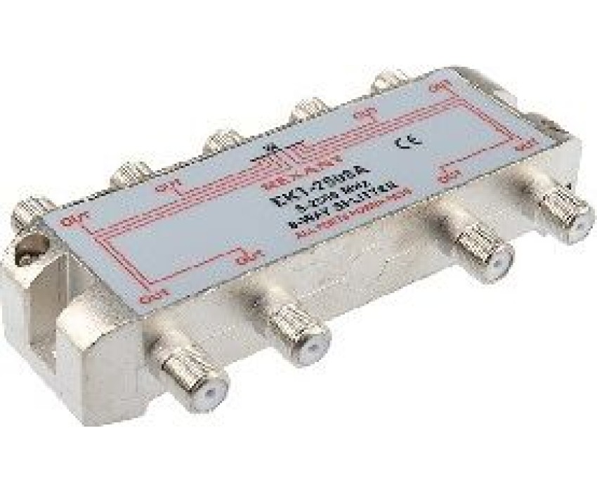 Телевизионный делитель это удобное средство для разделения сигнала на несколько равных частей. Антенные делители,также называемые телевизионные сплиттеры часто используются, когда требуется подключить один телевизионный кабель, идущий от антенны, сразу к нескольким телевизорам или ресиверам. Особенно это актуально в многокомнатных квартирах или многокомнатных загородных домах. Делитель имеет один вход под F разъем и восемь выходов, также под F разъемы. Сигнал, подающийся на вход делителя, делится на две равные части и передается на выходы. Для подкл кабелей используются стандартные F-разъемы. Полоса пропускания делителя от 5 до 2500МГц позволяет использовать его в системах спутникового телевидения. Качественно изготовленный ТВ сплиттер REXANT долго и надежно прослужит в составе телевизионной системы, делая удобной эксплуатацию нескольких тел-в.