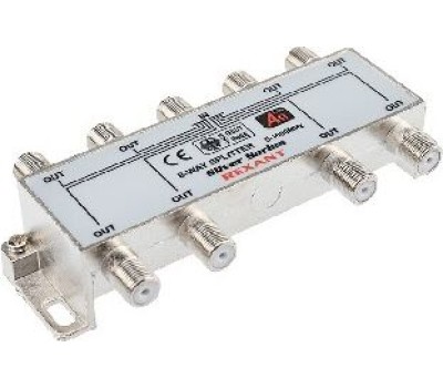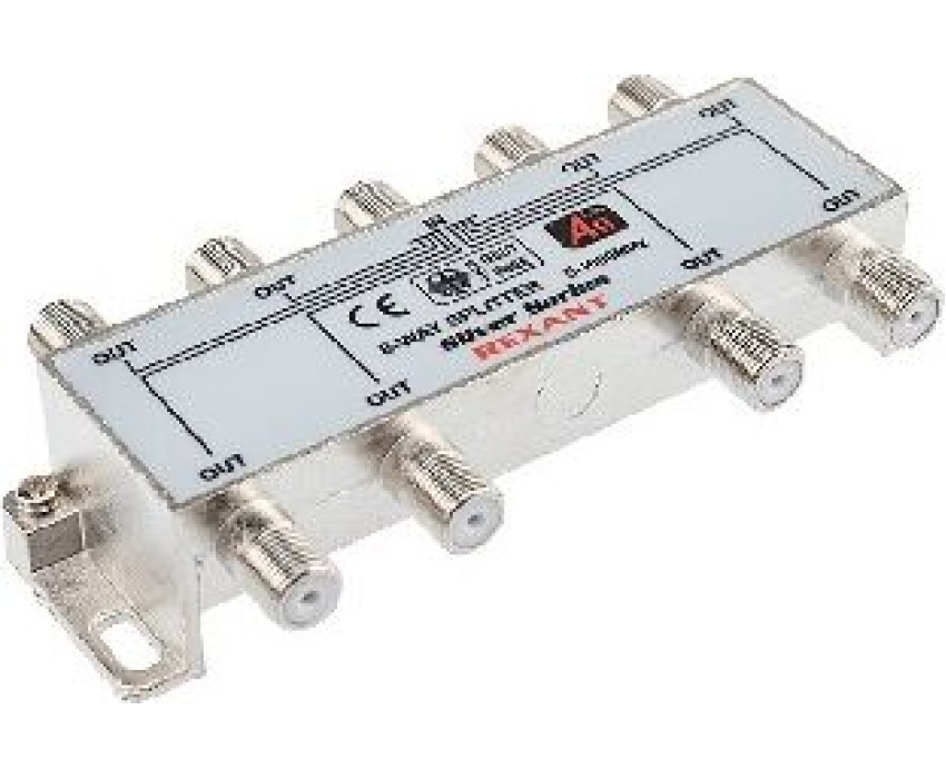 Телевизионный делитель или сплиттер предназначен для телевизионных систем и используется в домах и квартирах, где требуется подключить несколько телевизионных аппаратов к одной антенне. Сплиттер распределяет поступающий на вход сигнал поровну на его выходы, что обеспечивает одинаково четкое изображение на всех подключенных устройствах. Он имеет восемь выходов для сигнала и подключается с помощью стандартных F-разъемов. Делитель комплектуется необходимыми F-разъемами. Пайка внутри делителя осуществляется с использованием серебренносодержащего припоя, что позволяет получить сигнал высокого качества и увеличить надежность. Делитель имеет надежный металлический корпус. Полная комплектация ТВ сплиттера (F-разъемы в комплекте) позволяет удобно и быстро монтировать телевизионный кабель и подключать аппаратуру. Данный делитель подходит для сигналов с частотой 5-1000 МГц, что соответствует стандартному эфирному телевидению.