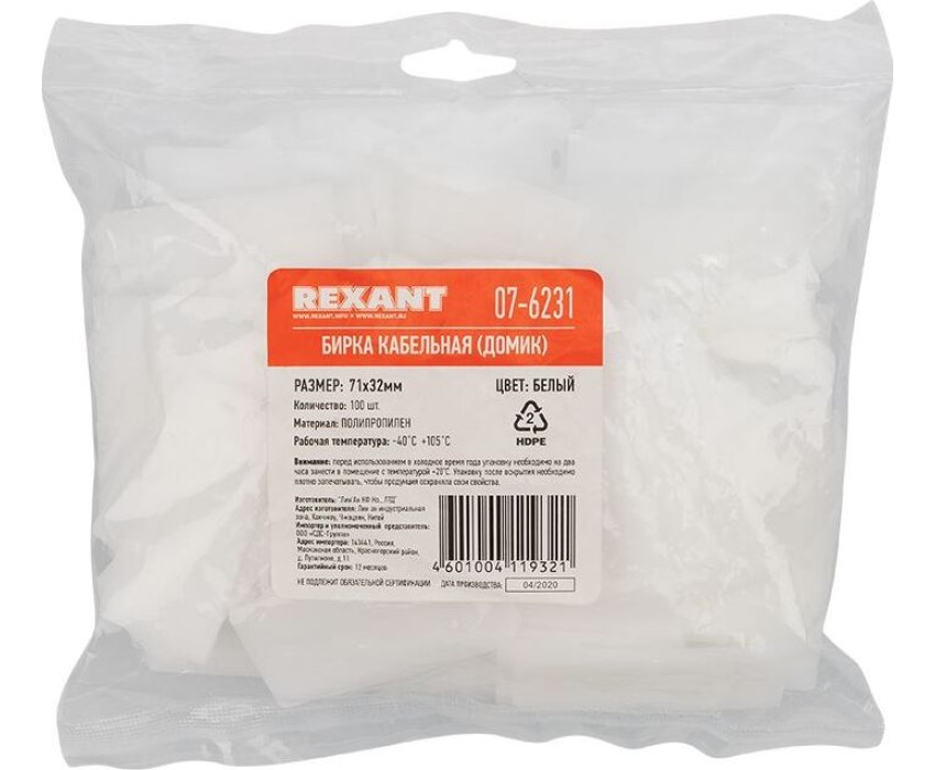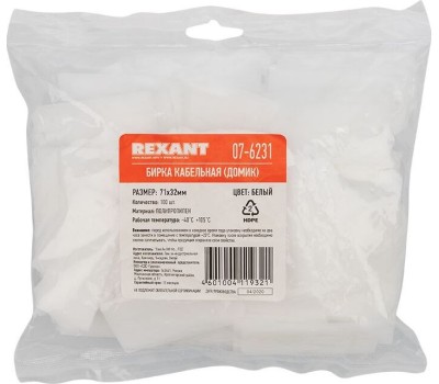 REXANT Бирка кабельная «Домик прямоугольный» белая (100 шт/уп)