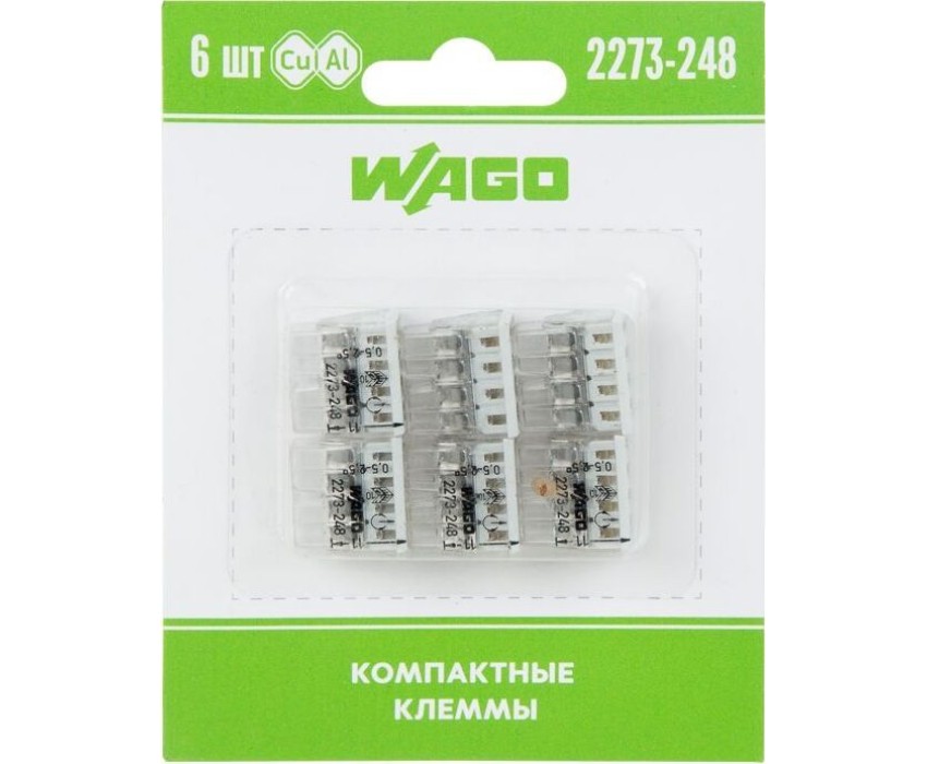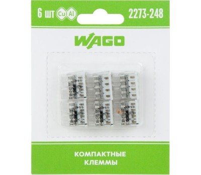 Электроустановочные изделия WAGO (07-5145-06) СЕРИЯ 2273-248 КОМПАКТНАЯ 8-ПРОВОДНАЯ КЛЕММА, 6 ШТУК