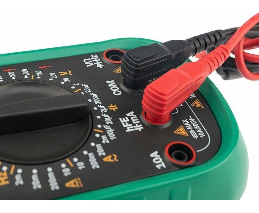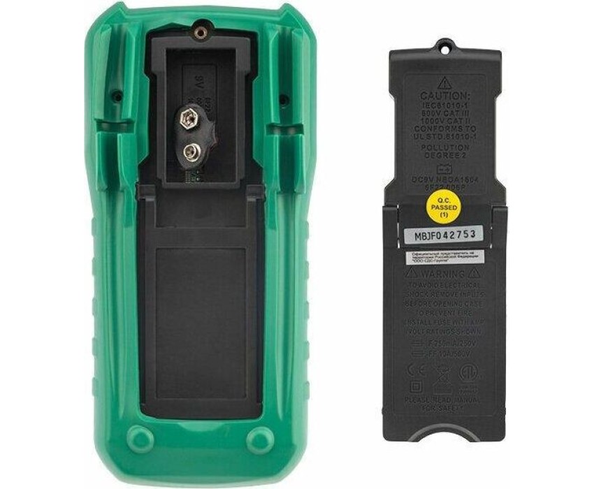 Характеристики: Разрядность шкалы мультиметра: 19999 отсчетов Постоянное напряжение: 200 мВ: ±0.05%, 2 мВ/20 В/200 В: ±0.1%, 1000 В: ±0.15% Переменное напряжение: 2 В/20 В/200 В: ±1.0%, 700В: ±1.2% Постоянный ток: 2 мА/20 мА: ±0.5%, 200 mмА: ±0.8%, 10 А: ±1.5% Переменный ток: 2 м/20 мА: ±0.8%, 200 мА: ±1.2%, 10 А: ±2.5% Сопротивление: 200 Ом: ±0.5%, 2 Ом/20 Ом/200 кОм/2 МОм: ±0.3%, 20 МОм: ±0.5%, 200 МОм: ±5.0% Емкость конденсаторов: 2000 нФ/20 нФ/200 нФ/2 мкФ/20 мкФ: ±4.0% Частота: 20 кГц: ±1.5% Коэффициент усиления транзисторов по току: 1-1000 Прозвонка соединений Tест диодов, транзисторов Автоматическое отключение питания: ~40 мин Удержание данных на дисплее DATA HOLD Индикация разряда батареи: есть Индикация перегрузки «1» есть Источник питания 9 В Габариты: 91*189*31,5 мм Комплект поставки: мультиметр, чехол, инструкция