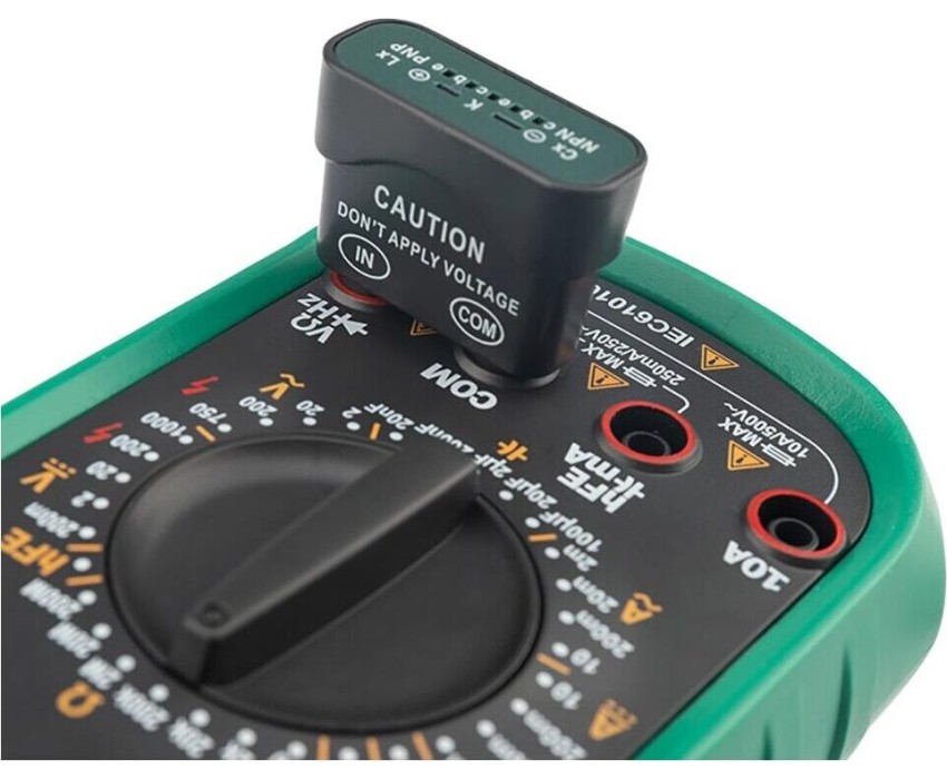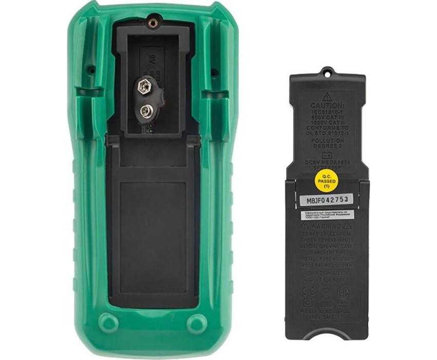 Характеристики:; Разрядность шкалы мультиметра 2000 отсчетов; Постоянное напряжение: 200 мВ/2 В/20 В/200 В: ±0.5%, 1000 В: ±0.8%; Переменное напряжение: 200 мВ: ±1.2%, 2 В/20 В/200 В: ±0.8%, 700 В: ±1.2%; Постоянный ток: 2 мА/20 мА: ±0.8%, 200 мА: ±1.5%, 10 А: ±2.0%; Переменный ток: 2 мА/20 мА: ±1.0%, 200 мА: ±0.8%, 10 А: ±3%; Сопротивление: 200 Ом/2 кОм/20 кОм/200 кОм/2 МОм: ±0.8%, 20 МОм: ±1.0%, 200 МОм: ±5.0%; Емкость конденсаторов: 2000 нФ/20 нФ/200 нФ/2 мкФ/20 мкФ: ±4.0%; Частота: 2 кГц: ±2.0%, 20 кГц: ±1.5%; Коэффициент усиления транзисторов по току: 1-1000; Прозвонка соединений; Диодный тест; Комплект поставки: мультиметр, чехол, инструкция