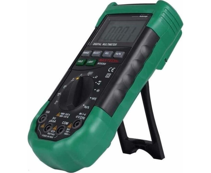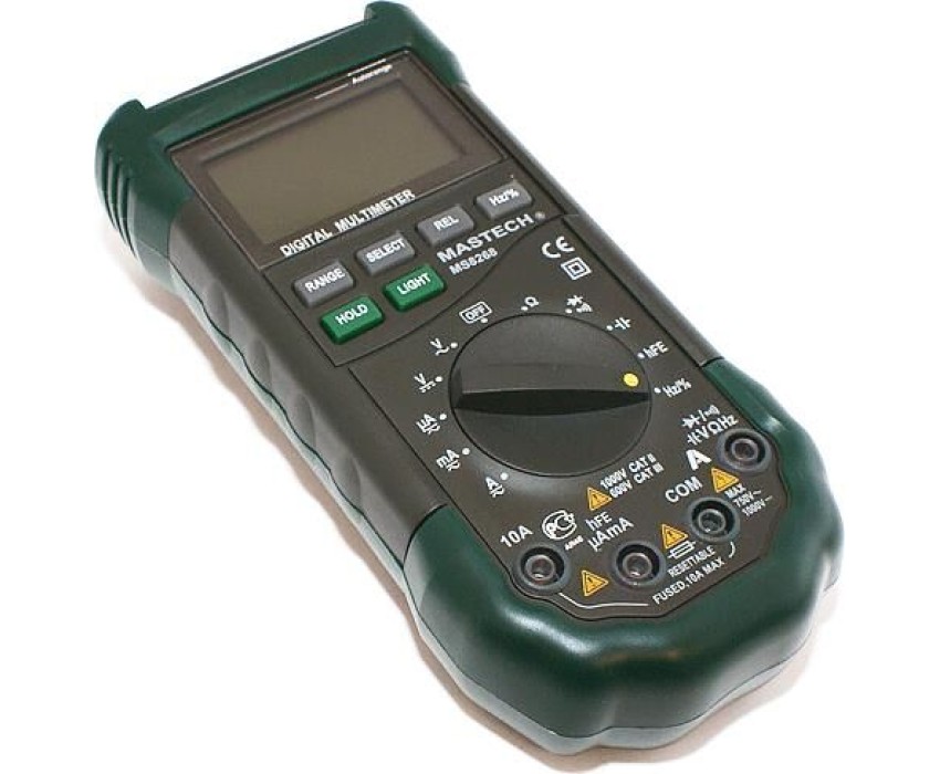 Мультиметр – электроизмерительный прибор, который включает в себя несколько функций и набор измеряемых параметров. Все приборы серии MS826* измеряют постоянное и переменное напряжение, а также постоянный и переменный ток, сопротивление в цепи, емкость. С помощью данного прибора можно проводить тестирование диодов и осуществлять прозвонку целостности цепи и в дополнение измерять емкость, частоту и скважность. Таким образом, один прибор сможем заменить сразу несколько устройств одновременно. Прибор имеет функцию удержания результата измерений DATA HOLD для тех случаев, когда измерения проводятся в труднодоступных местах и не всегда есть возможность взглянуть на экран. Дисплей прибора оснащен подсветкой, которая позволяет проводить измерения даже в слабоосвещенных местах. Дополнительно входные гнезда прибора оснащены системой звукового и светового оповещения о неправильном подключении. Инженеры старались сделать прибор максимально удобным для использования. Выбор измеряемых величин и пределов измерений производи