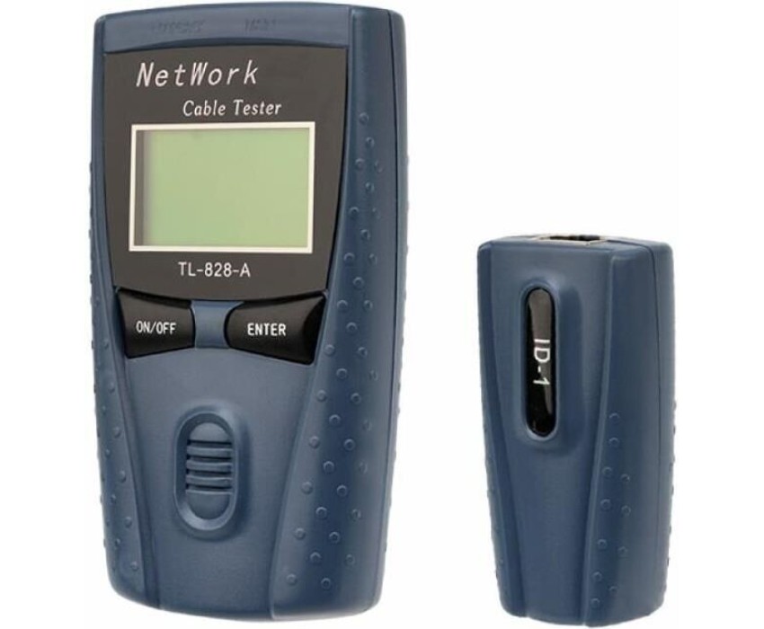 Тестер кабеля RJ-45 многофункциональный 828 REXANT предназначен для тестирования разомкнутых цепей, обнаружения короткого замыкания и устранения перекрестных соединений витых пар категории 5, 5Е и 6Е. Инструмент позволяет тестировать витую пару с точностью +1 % длиной от 5 до 450 метров. Информация выводится на жидкокристаллический дисплей размером 42х25 мм. Обладает функцией определения длины кабеля и длины кабеля до обрыва (метры, футы). По результатам тестирования калибровочные данные сохраняются. Рабочая температура тестера –20...+70 °С. В целях исключения разряда батареи питания, при бездействии, предусмотрено автовыключение через 10 минут. Батареи: 4 х 1.5В АА ( в комплекте)