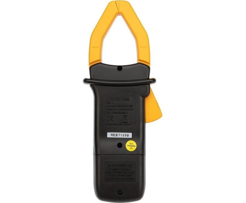 Токоизмерительные клещи MS2001 предназначены для измерения силы переменного тока, постоянного и переменного напряжения, температуры и сопротивления. С помощью данного прибора можно проверить качество соединений в электрической схеме. Последний полученный результат можно зафиксировать с помощью функции DATA HOLD. В условиях недостаточной видимости очень поможет подсветка ЖК дисплея. Питание от одной батареи 9 Вольт типа «Крона». Характеристики: Разрядность: 3 1/2 Выбор пределов измерений ручной Постоянное напряжение U=, В: 1000 (+/-1,0%) Переменное напряжение U~, В: 750 (+/-1,0%) Переменный ток I~, А: 20/200/1000 (+/-2,0%) Сопротивление R, кОм: 0,2/2.000 (+/-1,0%) Тест диодов Охват клещей: 42 мм Звуковой пробник: < 50 Ом Питание: 9 В, элемент 1604 или 6F22 («Крона») Режим DATA HOLD (сохранение данных) Габариты: 43х99х250 мм Вес: 480 г (с батареей)