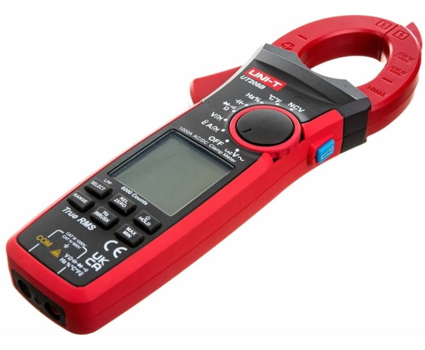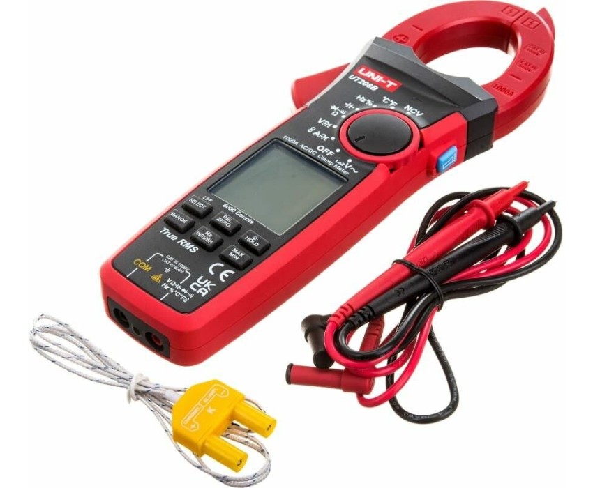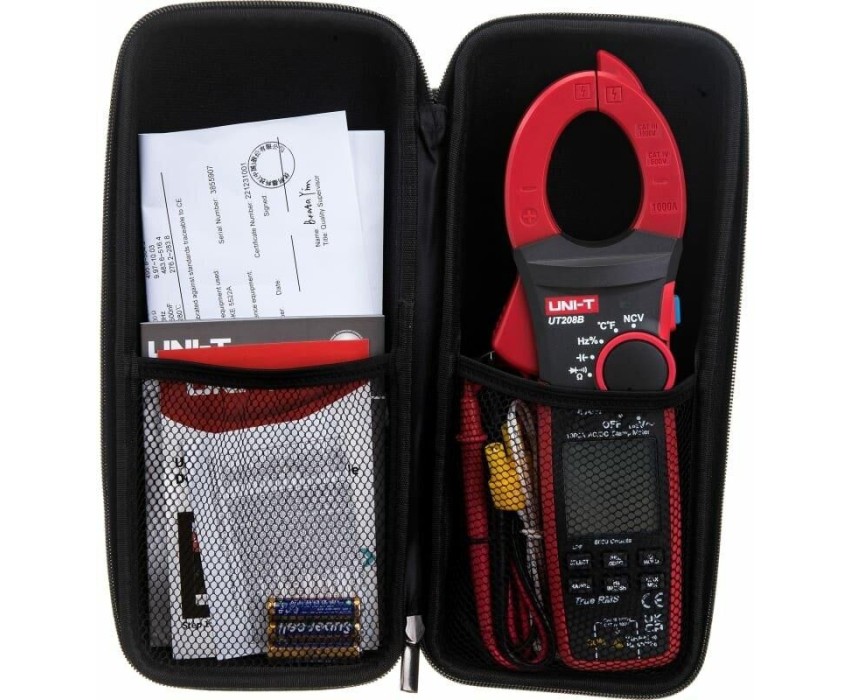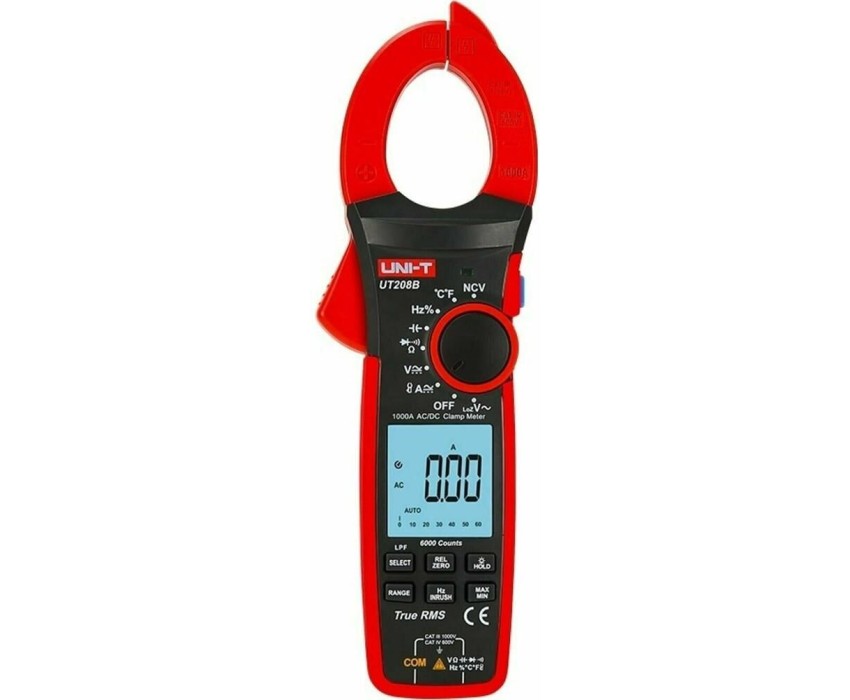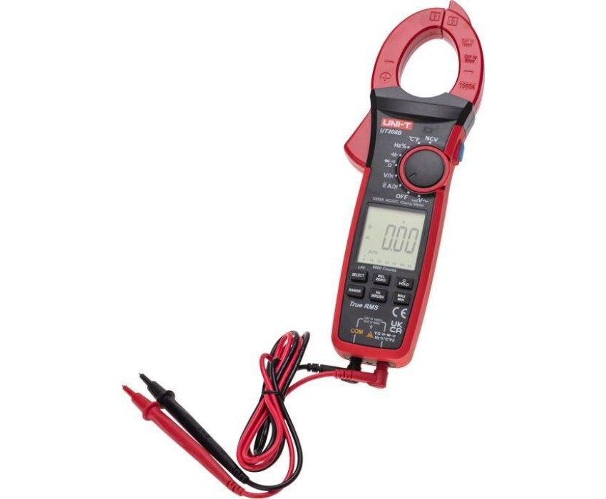 Токоизмерительные TRUE RMS цифровые клещи UNI-T UT208B является обновлением модели 208. Измеряют переменный ток до 1000А и пусковой ток до 600А, постоянное и переменное напряжение до 1000В, сопротивление, емкость частоту, скважность и температуру контактным методом. Оснащен многими функциями, такими как звуковая прозвонка целостности цепи, проверка диодов, а также удержание результатов DATA HOLD для тех случаев, когда измерения проводятся в труднодоступных местах и нет возможности взглянуть на экран. Отличительные особенности: метод измерения истинный среднеквадратичный (True RMS); бесконтактный детектор напряжения NCV; фильтр низких частот; измерение частот напряжения и тока; измерение максимальных/минимальных, относительных значений; автоотключение питания (15 мин); автоматический выбор пределов измерений; тестирование диодов; графическая шкала.