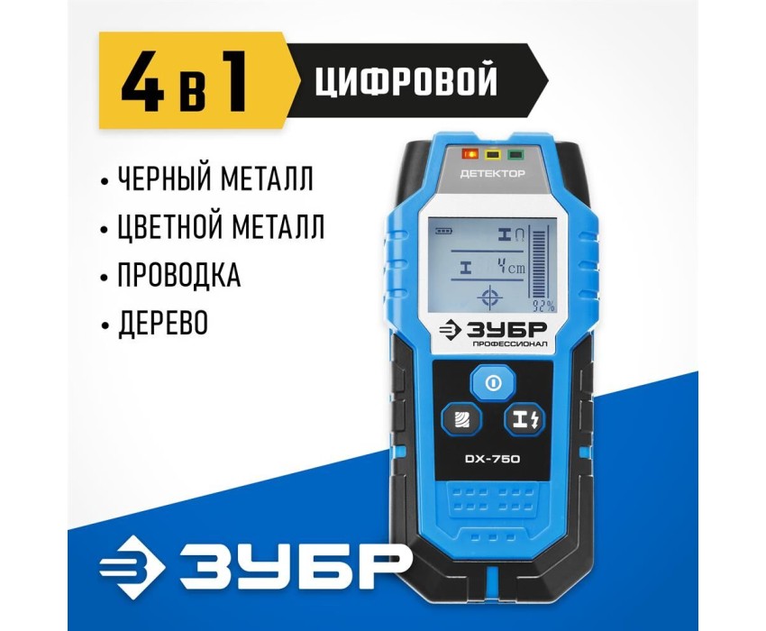 Детектор ЗУБР Детектор металла DX-750, глубина до: 10см, с автокалибровкой [45260]