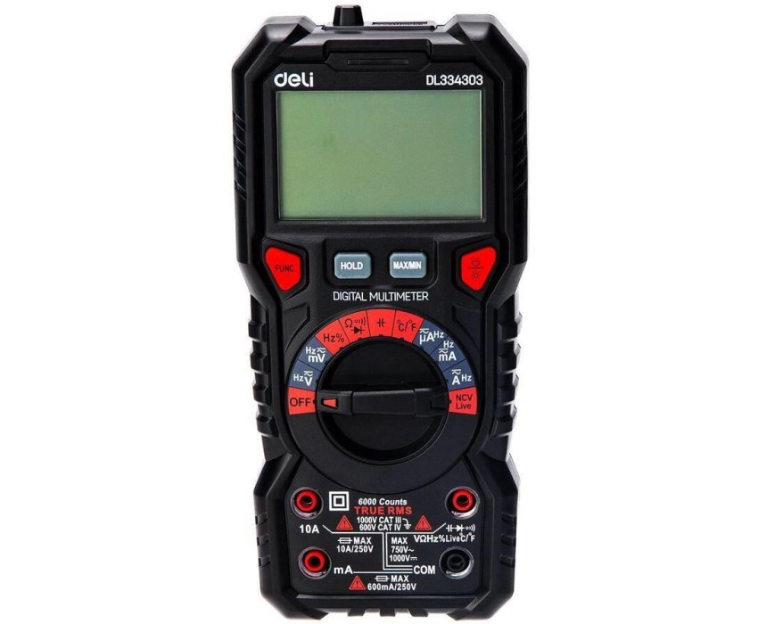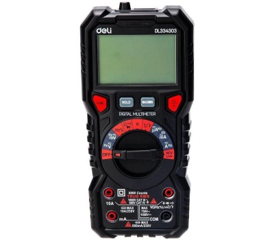 DELI Многофункциональный цифровой мультиметр DL334303 напряж. 0-1000В, сила тока 0,02-10А, сопр. до 60 МОм, ЖК-дисплей