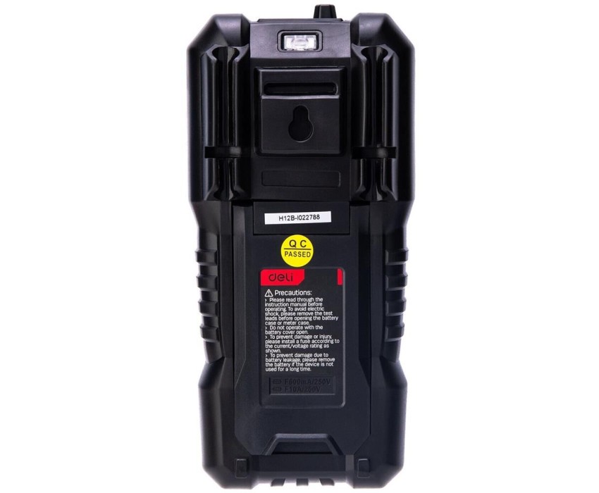 Цифровой мультиметр Deli DL334303 предназначен для измерения постоянного и переменного напряжения, постоянного и переменного тока, сопротивления цепи, емкости, частоты, температуры и др. Мультиметр обладает функцией NCV - бесконтактное определение напряжения (детектор скрытой проводки) - в зависимости от мощности сигнала будет гореть зелёный (сильный сигнал) или красный (слабый сигнал) индикатор. Проводит проверку целостности цепи, диодов и транзисторов, батарей 15В/9В. Разрядность дисплея составляет 5999.