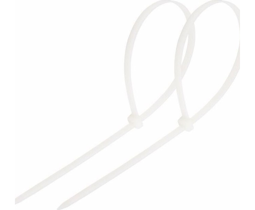 Основные характеристики: - длина и ширина: 250х7,6 мм - диаметр охвата (максимальный): 63 мм - максимальная рабочая нагрузка: 55 кг - высокое сопротивление к основаниям, маслам, смазочным материалам, хлоридным растворителям - класс воспламеняемости: UL 94 класс V-2 (самозатухающий) - не содержит галогенов - тип: неразъемные, одноразового использования - температурный диапазон использования: –35.+85 C - количество в упаковке: 100 шт. - цвет: белый.