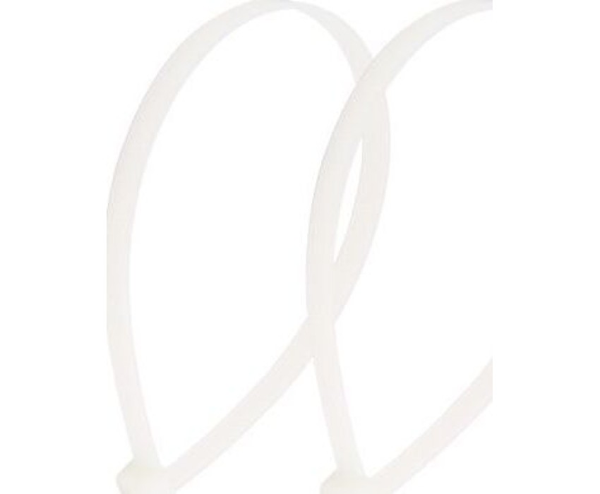 Основные характеристики: - длина и ширина: 450х4,8 мм - диаметр охвата (максимальный): 130 мм - максимальная рабочая нагрузка: 22 кг - прочность при растяжении: не менее 50 МПа - модуль упругости при растяжении: 8000-11000 МПа - высокое сопротивление к основаниям, маслам, смазочным материалам, хлоридным растворителям - класс воспламеняемости: UL 94 класс V-2 (самозатухающий) - не содержит галогенов - тип: неразъемные, одноразового использования - температурный диапазон использования: –35.+85 C - количество в упаковке: 100 шт. - цвет: белый