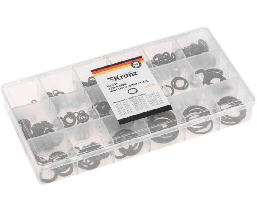 KRANZ Набор резиновых уплотнительных колец 3-22мм (225 шт/уп)
