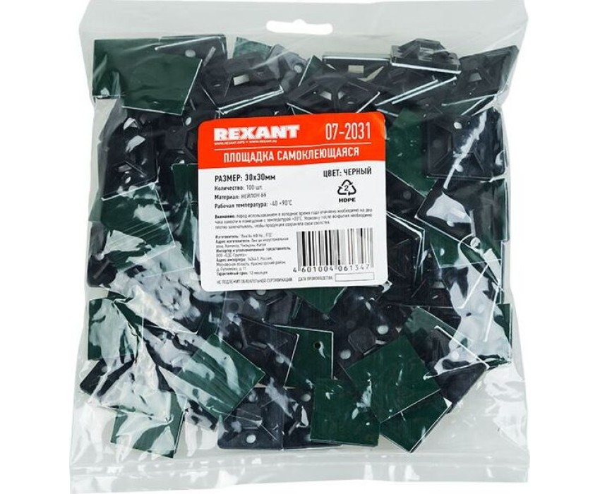 REXANT Площадка самоклеящаяся 30х30 мм, черная (100 шт/уп)