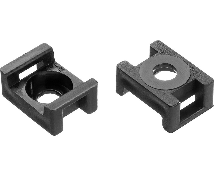 Электромонтажный крепеж предназначен для стяжки кабелей и проводов в пучки, а также крепления электропроводки к различным поверхностям. Стяжки, клипсы, дюбель-хомуты и монтажные площадки легко, быстро и удобно монтировать как внутри, так и вне помещений. Площадки с самоклеящимся основанием быстро и надежно закрепят хомут (стяжку) для кабеля электропроводки на гладкой поверхности внутри зданий и сооружений. При выполнении наружных работ площадки необходимо дополнительно крепить шурупом или саморезом. Для этого в площадке предусмотрено специальное отверстие. Крепление площадки на саморез повышает ее несущую способность. Изготовлены из высококачественного прочного и эластичного нейлона. Преимущества Усиленная конструкция благодаря увеличенной толщине Использование Для крепления кабельных стяжек к различным поверхностям при помощи саморезов.