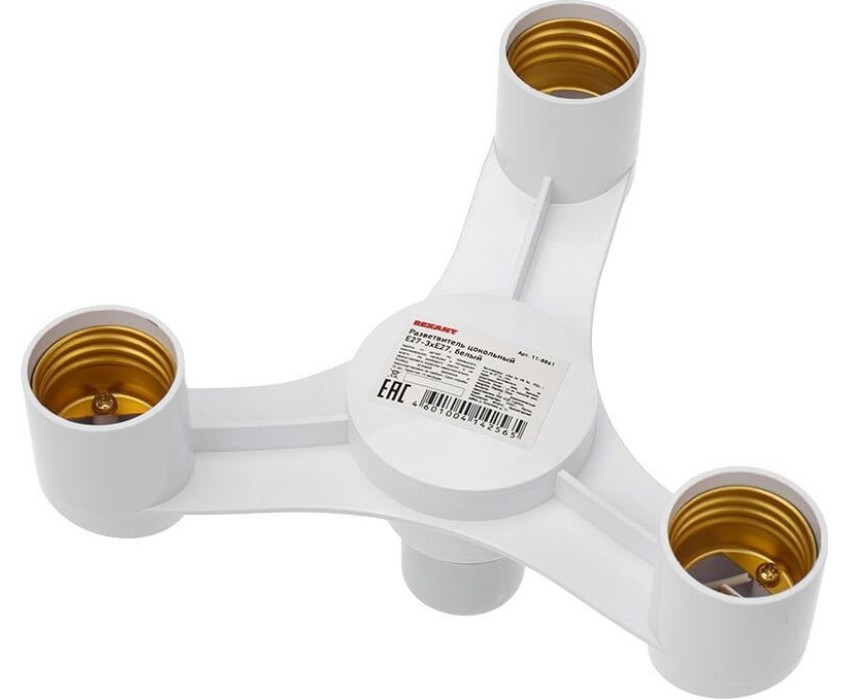 Патрон REXANT (11-8861) Е27-3ХЕ27 РАЗВЕТВИТЕЛЬ ЦОКОЛЬНЫЙ, БЕЛЫЙ