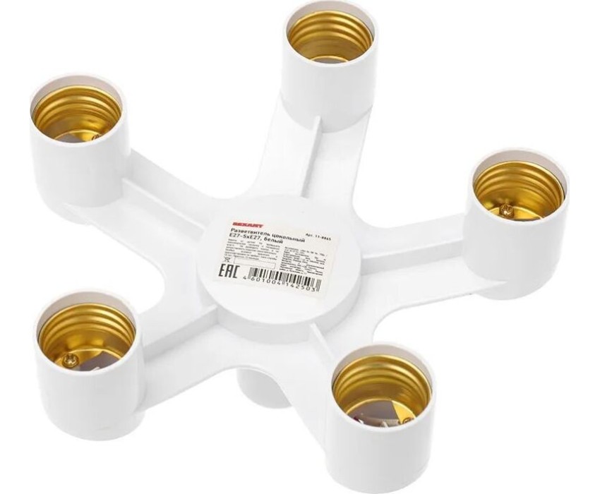 Патрон REXANT (11-8865) Е27-5ХЕ27 РАЗВЕТВИТЕЛЬ ЦОКОЛЬНЫЙ, БЕЛЫЙ