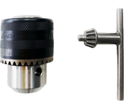 Ключевой патрон с посадочным диаметром 1/2 дюйма подходит для фиксации оснастки диаметром 1,5-13 мм в дрели. Высококачественное исполнение позволяет использовать его для профессиональных целей. Патрон с кулачками твердостью 54-56 HRC выдерживает интенсивное использование, может применяться в ударном режиме. Ключевой механизм обеспечивает большое усилие затяжки оснастки, что является гарантией надежной фиксации. За счет рельефной поверхности с патроном удобно работать, так как он не выскальзывает из рук. К патрону прилагается ключ для смены и фиксации сверл.