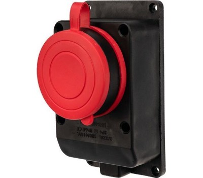 Силовые разъемы REXANT (111-007) Розетка настенная с крышкой, 3Р+РЕ, 32 А IP44 черная каучук