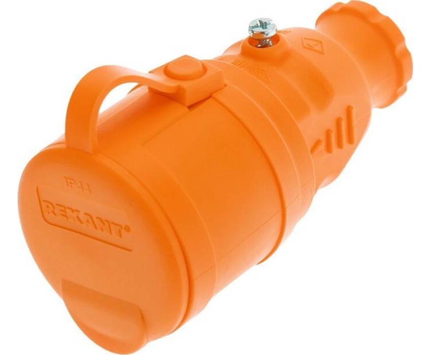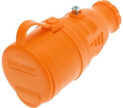 Силовые разъемы REXANT (111-123) Розетка переносная с крышкой, с/з, 16 А, IP44, каучук оранжевая