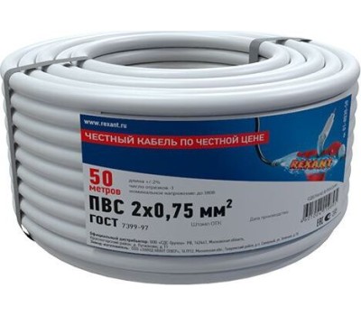 REXANT Провод соединительный ПВС 2x0,75 мм², белый, длина 50 метров, ГОСТ 7399-97