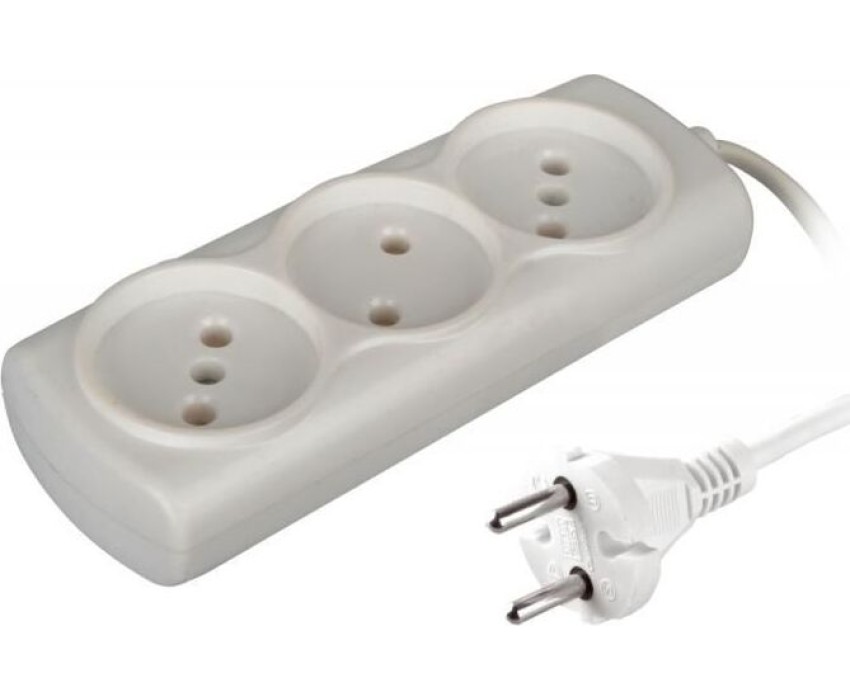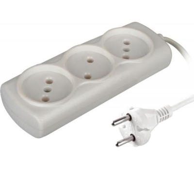 Бытовой удлинитель, количество розеток - 3 шт., без заземления, провод - ШВВП 2х0,75, номинальная сила тока, А - 6, макс.мощность, Вт - 1300, длина провода - 1,5 м, цвет - белый.