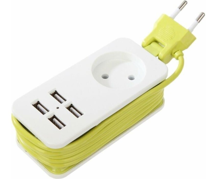 Удлинитель серии Travel, шнур 1,5м., 1 гнездо, б/з, 2USB*1,1A. Белый с салатовым. ; Длина кабеля, м - 1,3; Количество гнезд, шт. - 1; Максимальная нагрузка, Вт - 500; Материал корпуса (изделия) - пластик; Минимальная партия - 1; Наличие USB-порта - Да; Страна производства - Китай; Цвет корпуса (изделия) - белый