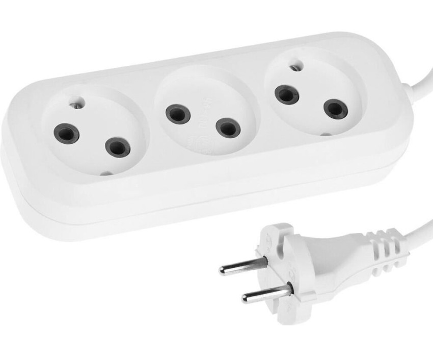 MAX нагрузка, Вт: 1300. Выключатель: нет. Защитные шторки: нет. Напряжение сети, В: 220. Номинальная сила тока, А: 10. Световая индикация: нет. Сечение провода, мм2: 2х0.75. Степень защиты: IP 20. Тип: удлинитель. Тип провода: ПВС. Цвет: белый. Кол-во розеток, шт: 3. Длина кабеля, м: 2. Заземление: нет.