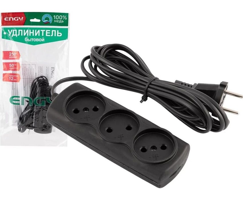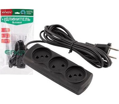 Удлинитель ENGY Удлинитель ENGY "Эконом" 3м/3роз. (ШВВП 2х0,75) черный 186747