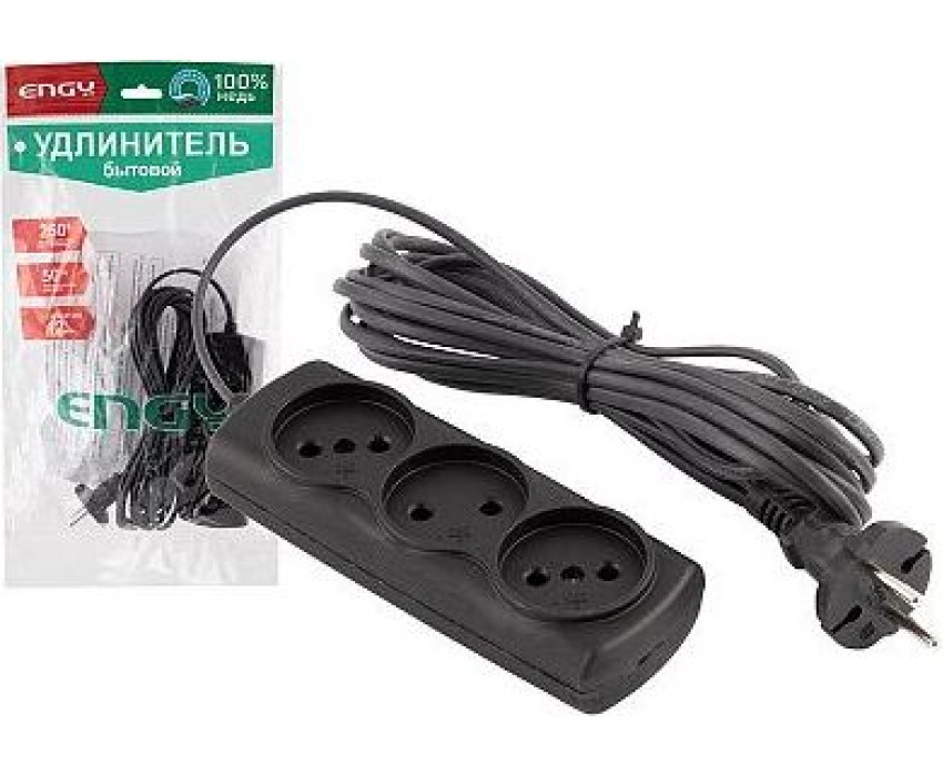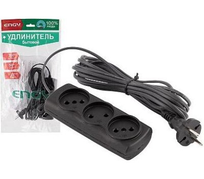Удлинитель ENGY Удлинитель ENGY "Эконом" 5м/3роз. (ШВВП 2х0,75) черный 186748