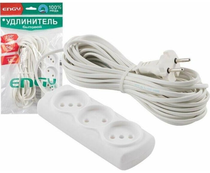 Удлинитель ENGY Удлинитель "Эконом"10м/3роз. (ШВВП 2х0,75) (186719)
