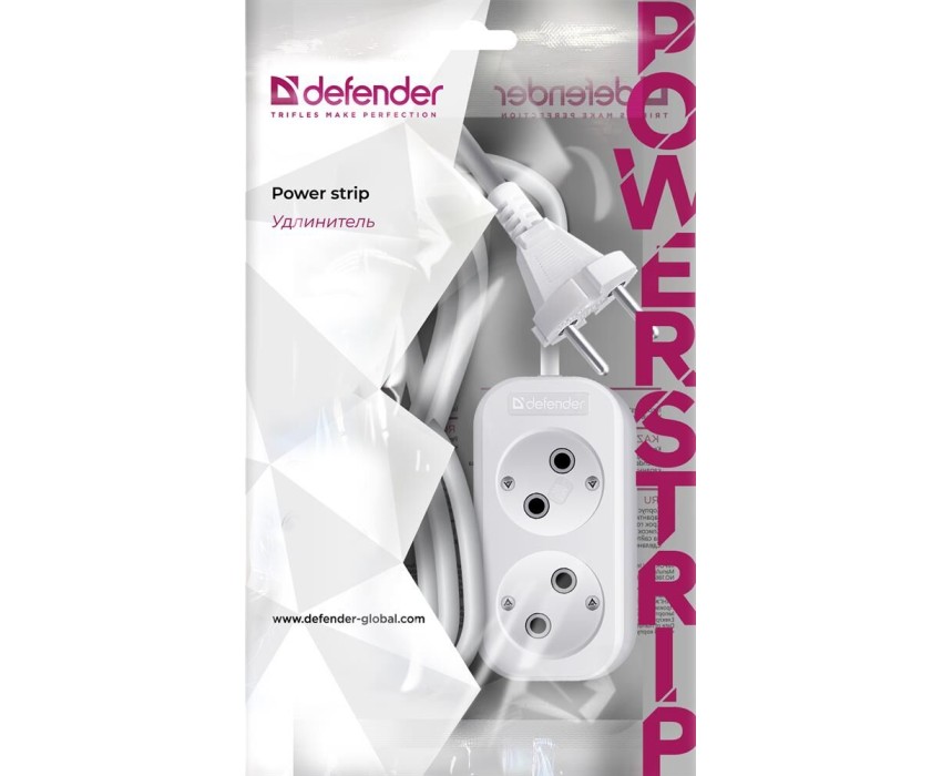 Удлинитель DEFENDER (99271) B220 - 2 розх 3 м, белый