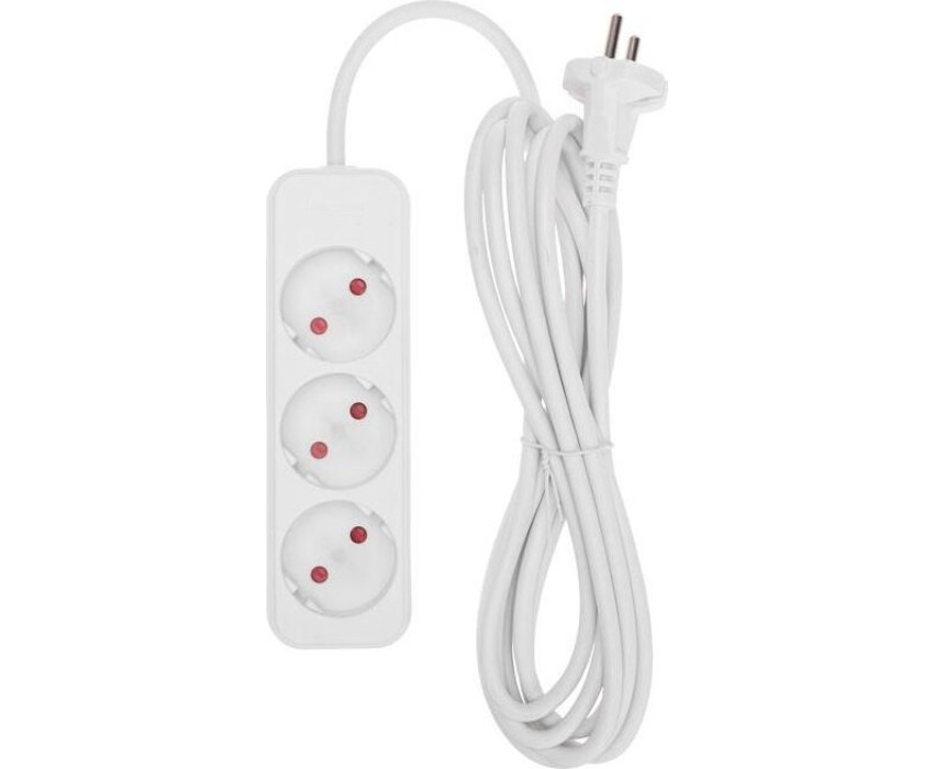 Мощность – 2200Вт. Сечение провода – 2х1,0мм?. Тип вилки – прямая. Цвет удлинителя – белый.