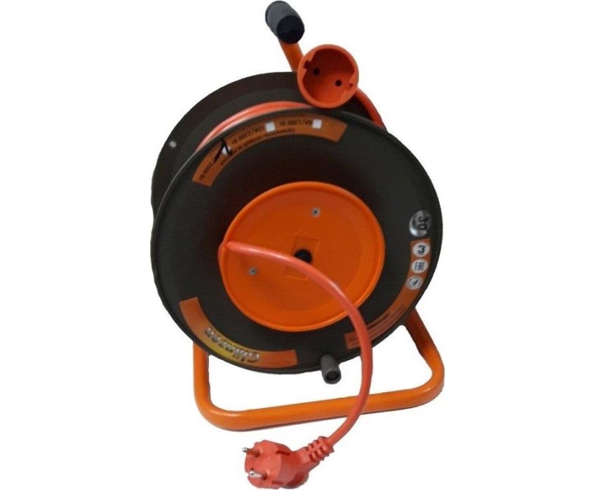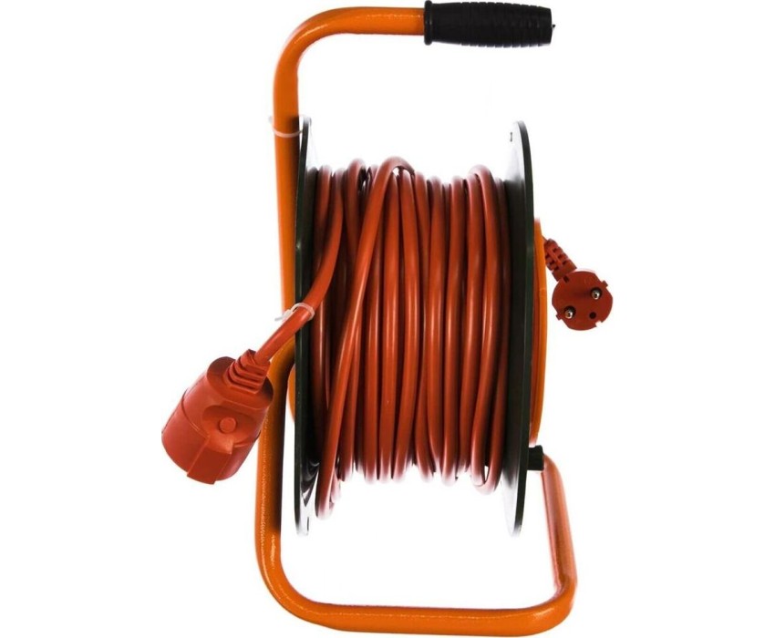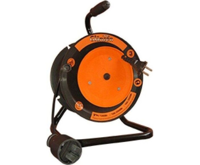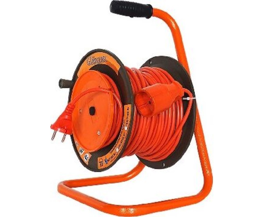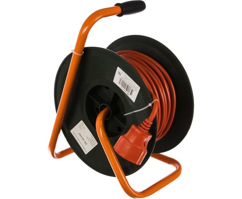 Удлинитель силовой, 1 выносная розетка без заземления, пластиковая катушка, металлическая тренога, номинальный ток: 16 А, длина провода: 30 метров, вид провода: ПВС 2х2,5, максимальная нагрузка: 4600 Вт, защита: IP20, габаритные размеры: 205х250х335 мм, вес: 3,1 кг.