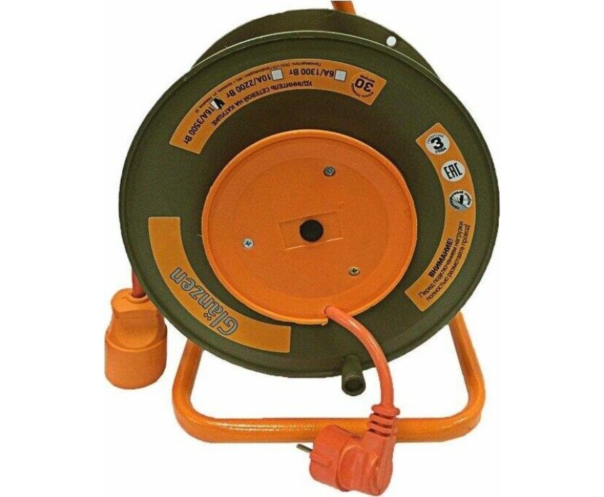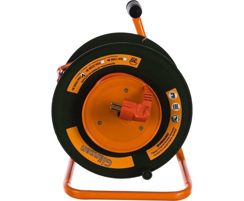 Удлинитель силовой GLANZEN EB-30-010, на катушке, с/з, 1 роз -30 м