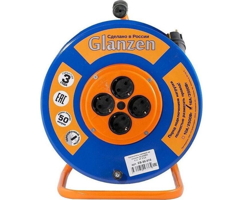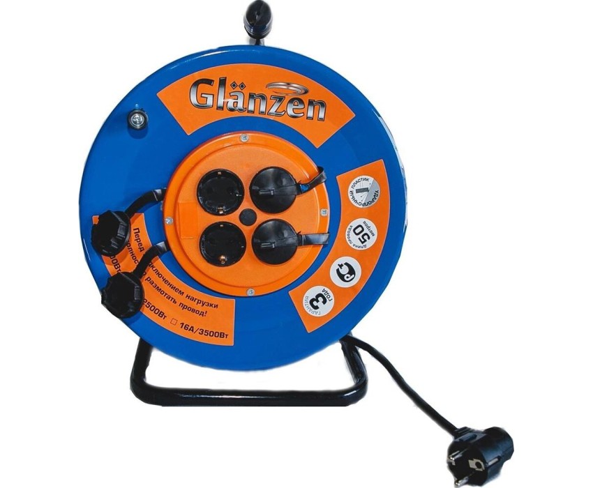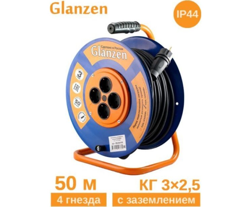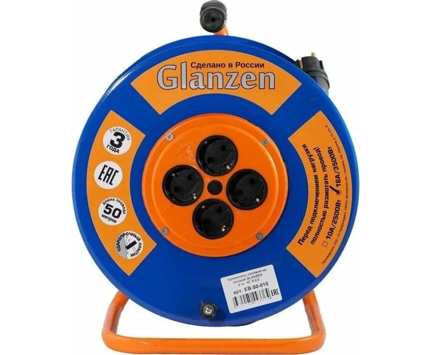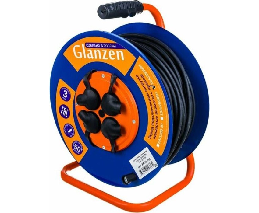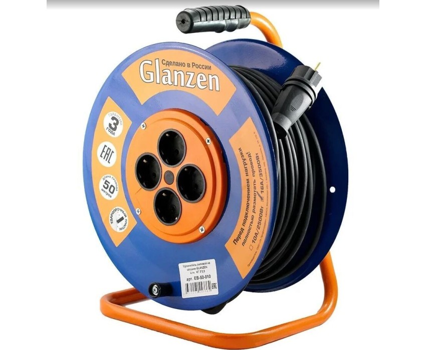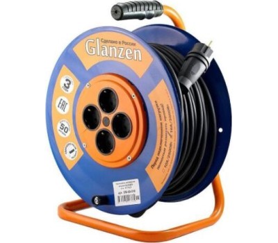 Удлинители GLANZEN EB-50-010, на катушке, с/з, 4 роз - 50м