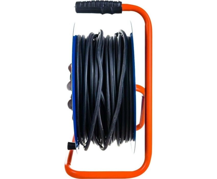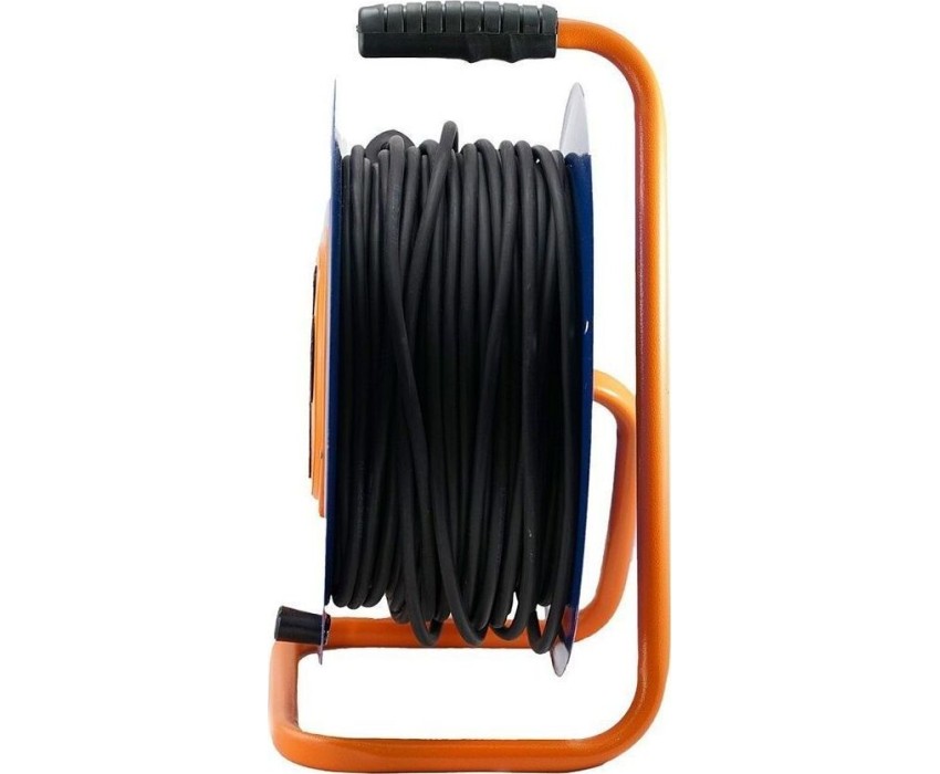 Удлинитель на катушке, 4 розетки с заземлением, металлическая катушка, металлическая тренога; Мощность нагрузки: 3200 Вт Номинальный ток: 16 А Длина провода: 50 метров Вид провода: КГ 3х2,5 Защита: IP44, Рекомендован к применению в промышленных или бытовых целях; Рекомендован к применению в промышленных или бытовых целях. Габаритные размеры: 290х310х380 мм Вес: 6 кг