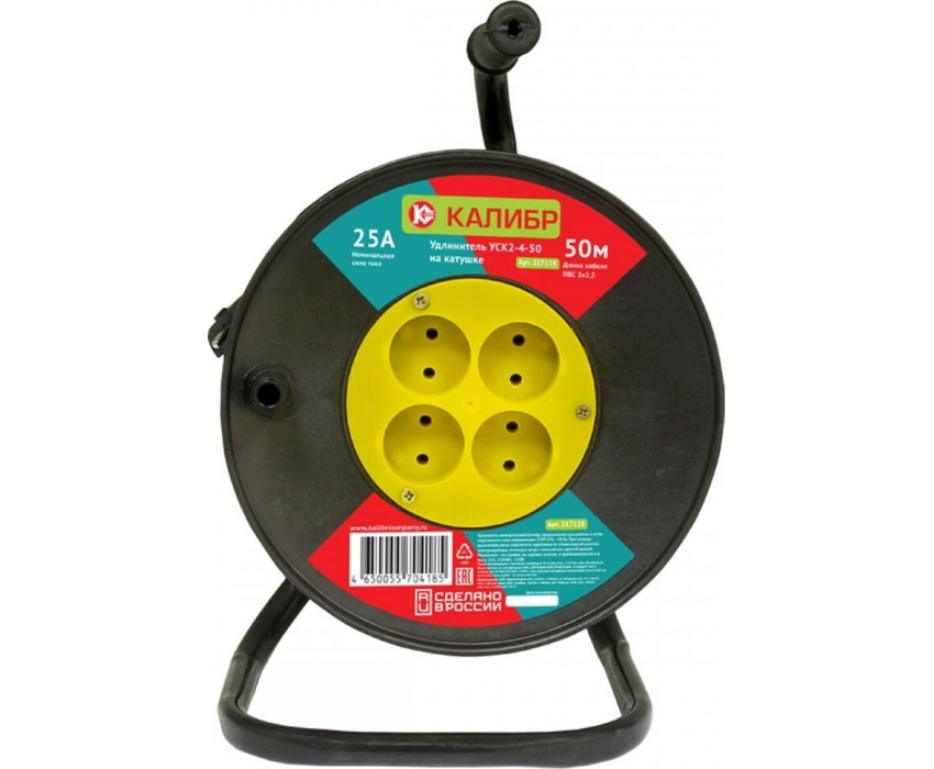 Удлинитель КАЛИБР Удлинитель на катушке УСК2-4-50 (2х2,5)