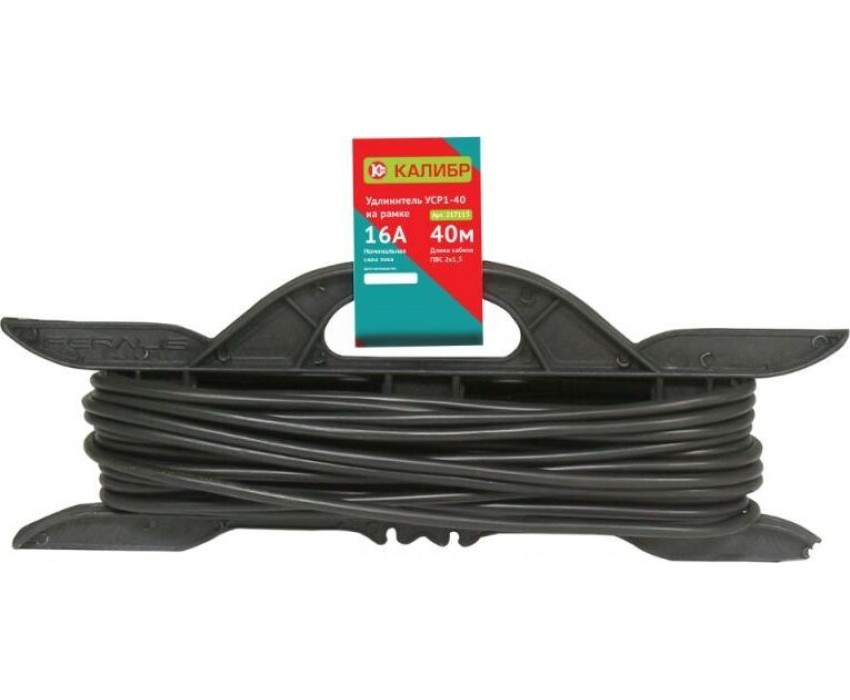 Удлинитель электрический "Калибр УСР1-40" на рамке, предназначен для работы в сетях переменного тока напряжением 230±10%, ~50 Гц. При помощи удлинителя легко подключить удалённые от стационарной розетки электроприборы, имеющие шнур с плоской или круглой вилкой. Незаменим - на стройке, садовом участке, в промышленности и в быту. *в зависимости от поставки, внешний вид рамки может отличаться от представленного на фотографии. Сечение 1,5 мм2. Максимальная нагрузка 10 А, 2300 Вт. Длина кабеля 40 м.